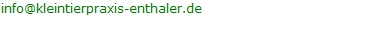 Kontakt: Kleintierpraxis Barbara Enthaler Lanzinger Str 2 83250 Marquartstein Tel.: 08641/6992005 Fax.: 08641/6992006 E-Mail: ![]() |